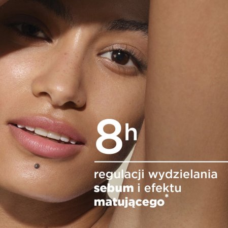 Długotrwałe działanie redukujące niedoskonałości: patent Fluidactiv™ w połaczeniu z lipoglicyną reguluje jakość i ilość produkowanego sebum i dzień po dniu redukuje niedoskonałości i ogranicza powstawanie nowych.